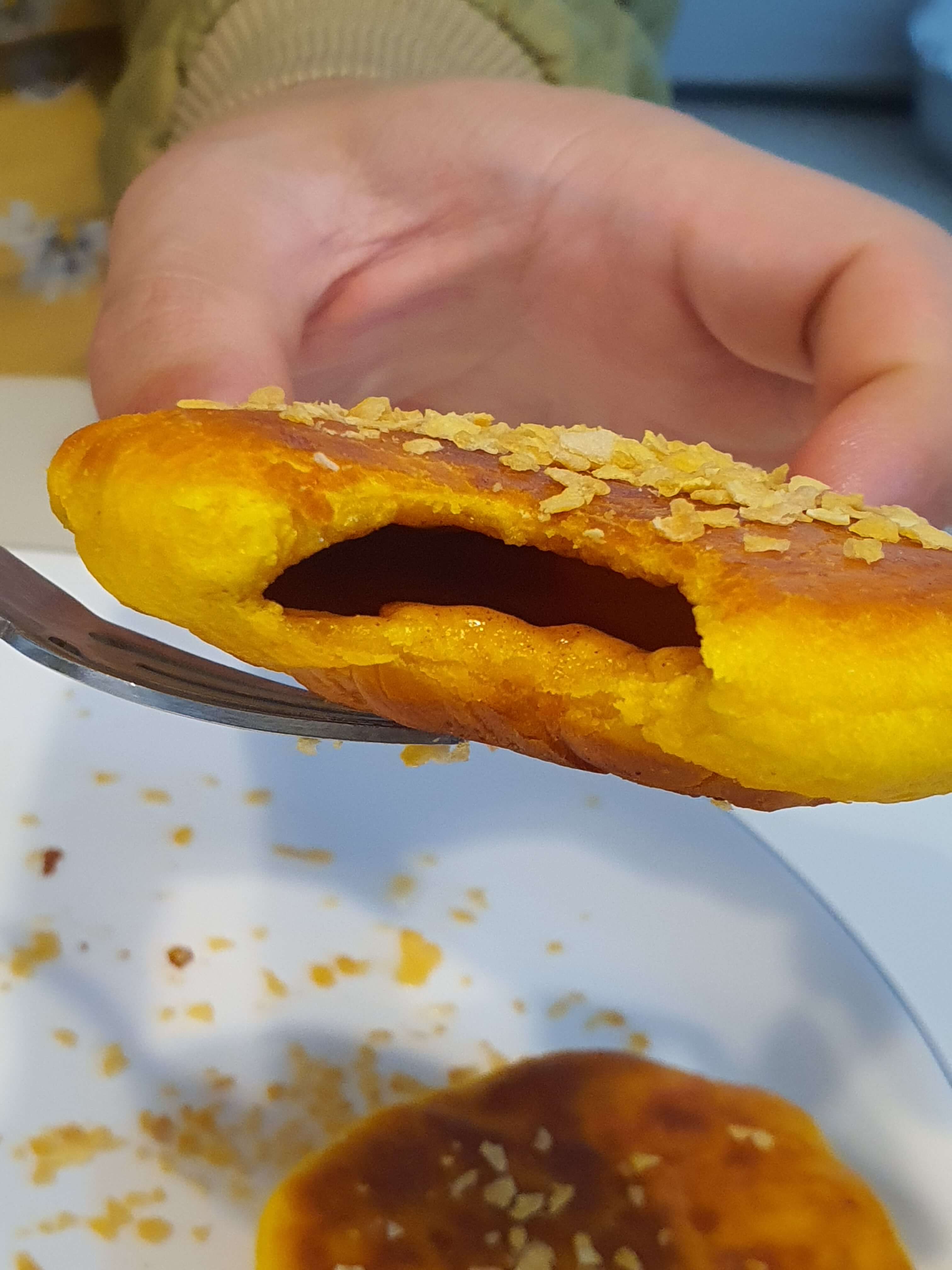 쫀득하면서도 옥수수 맛도 나고 호떡 특유의 달달함까지 느낄 수 있는 맛있는 간식이었습니다. 후레이크도 뿌려주니 바삭하니 좋았습니다.